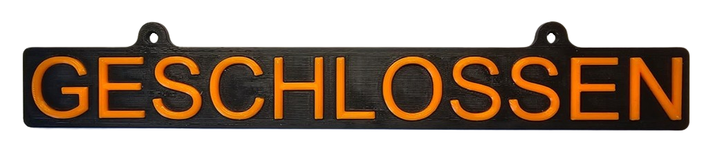 Schild aus dem 3D Drucker 6 x 32 cm